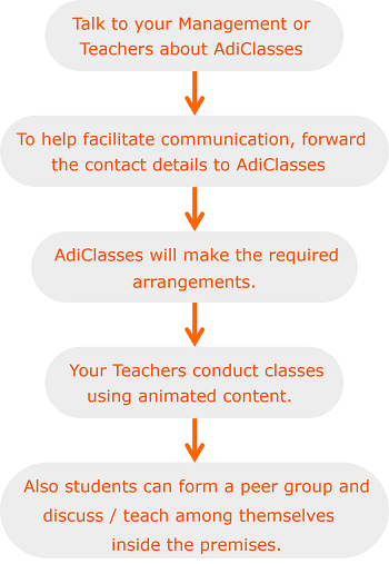 Flipped Classroom: AdiClasses provides the knowledge part while teacher concentrates on problem solving, critical concepts and personal attention.